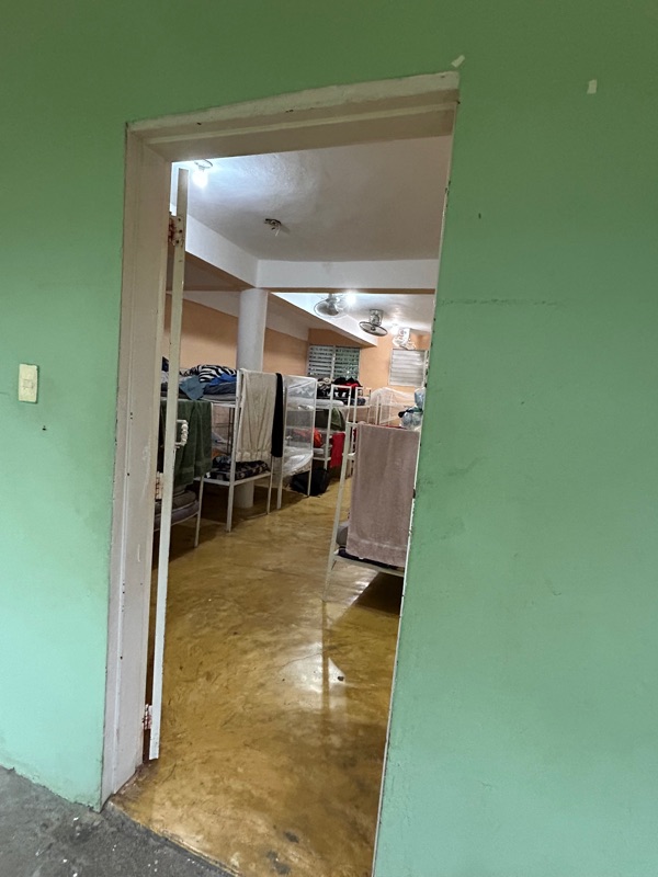 Seven of us were in this room. Two bathrooms with three toilets and three showers. We pulled the mattresses off of seven top bunks and used the top frame as hanging racks for our clothes 😊.
