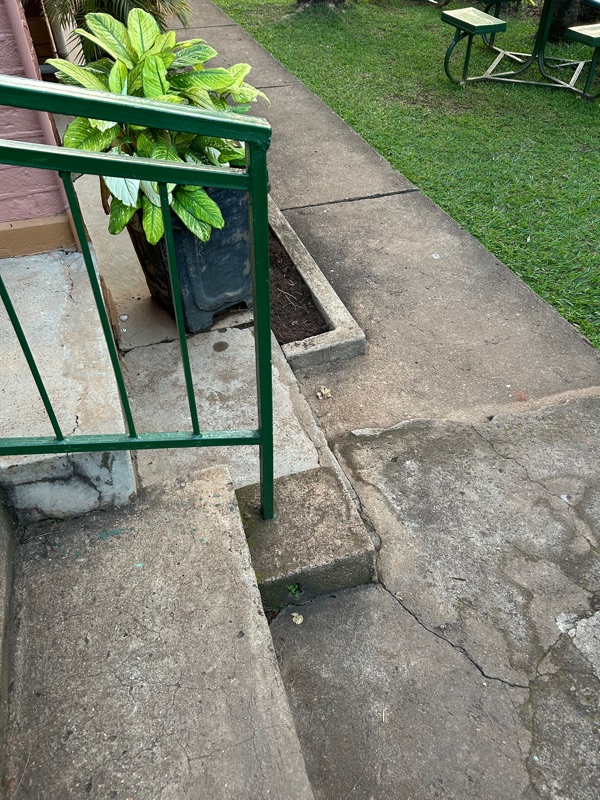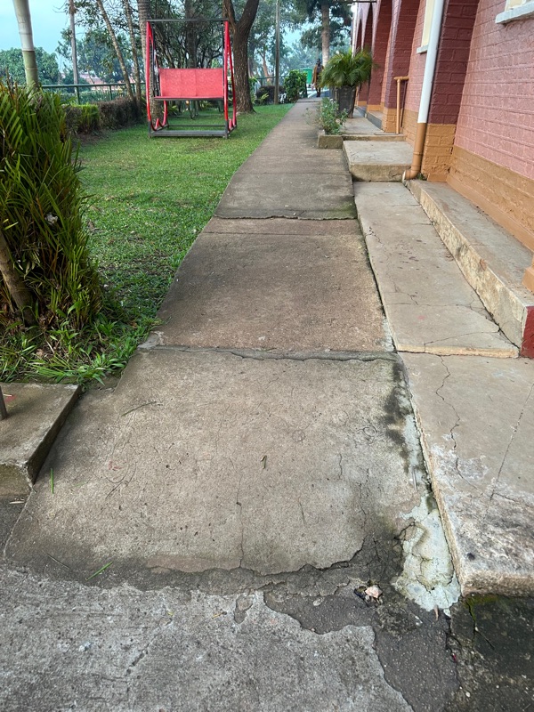 Our hotel grounds… a pieced together walkway that has caused us all to stumble at least once…