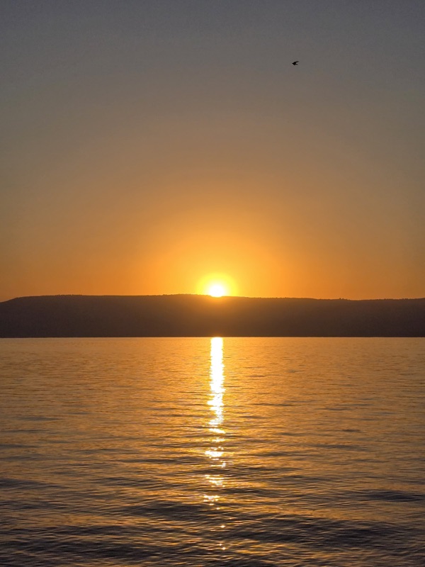 And a beautiful sunrise from our first hotel 😊. The body of water is the Sea of Galilee💕.