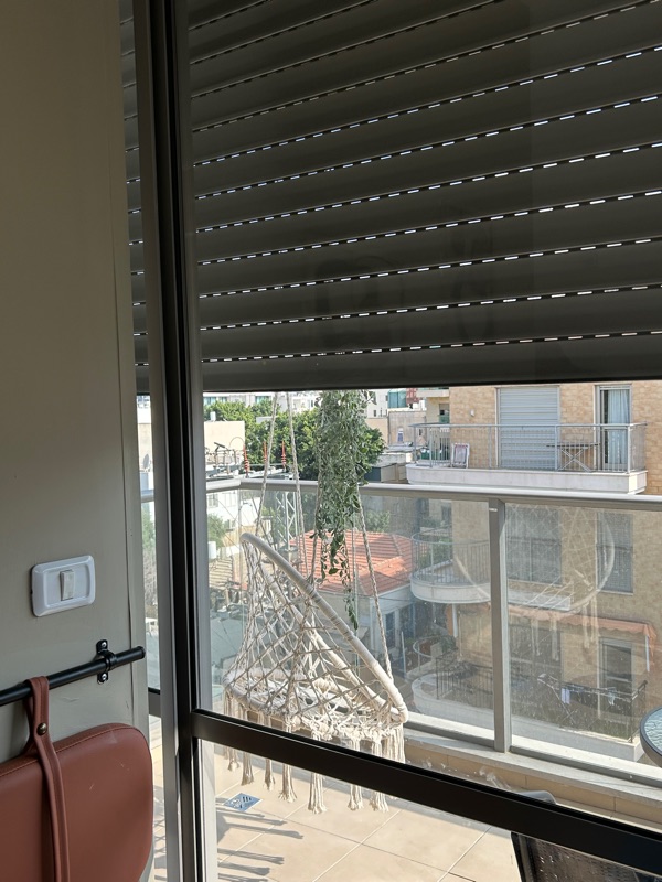 Below is a view of the blinds lowered into position in the apartment across from ours.