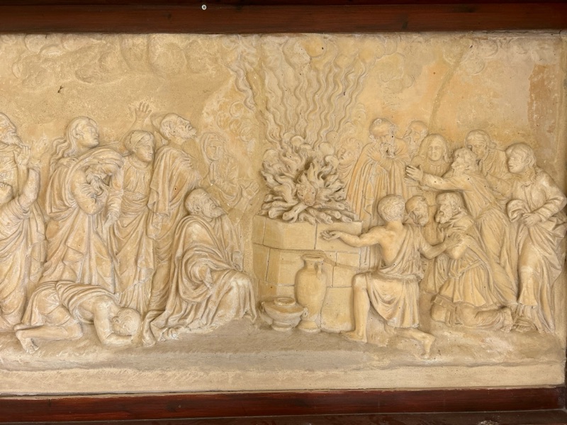 Forgot this one! This was where Elijah called out the prophets of Baal during the three year drought. It is now a beautiful garden oasis overlooking the town of Haifa. Below is Elijah killing a false prophet.
