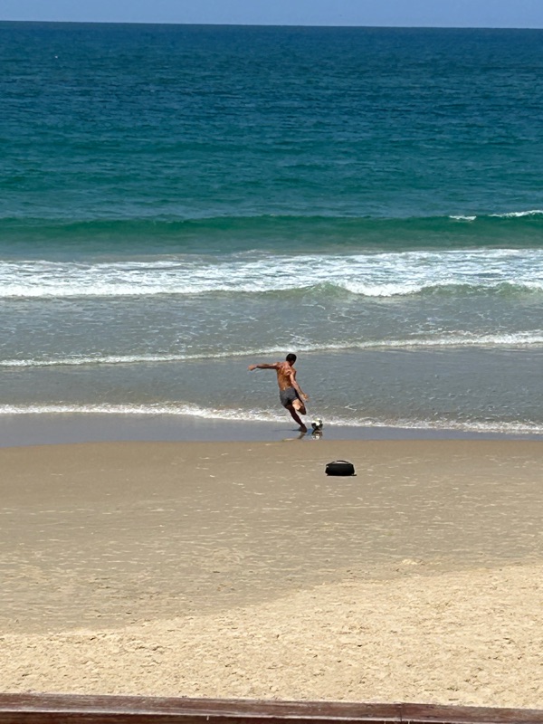 He kicks them, and they all come back๐๐. He’s got three in the surf already!