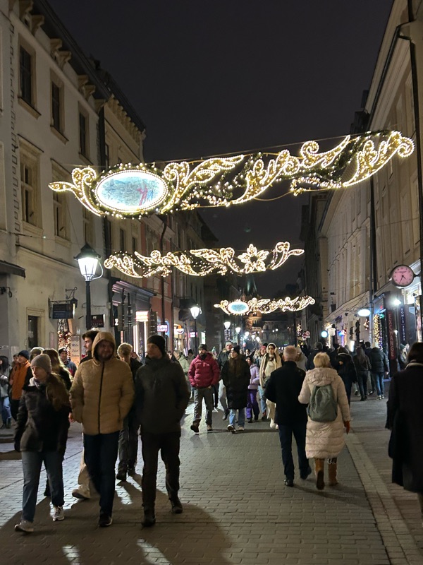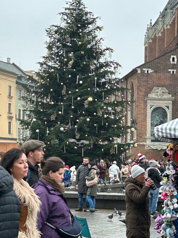The crowds have grown noticeably thicker as the days have moved toward the weekend, and today topped them all! Barely room to moveπ±. I mentioned to Dean how glad I was that we were here in the early part of the week, and could enjoy the Christmas market in the square unencumbered by this many people. I am grateful that the same will hold true for Warsaw, as we will leave for Warsaw on Sunday, and not arrive until later in the afternoon. We will have Monday through Thursday there, and then prepare to fly home on Friday morning. Some scenes from today’s market…