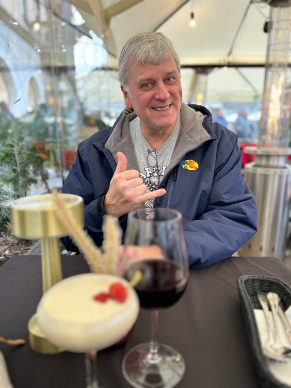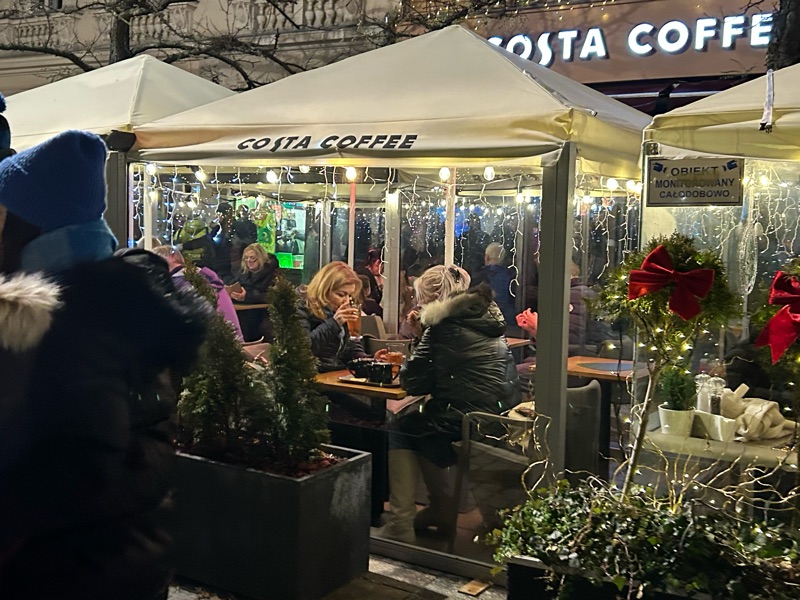Inside an outside, covered and heated seating area having sour rye soup and a toddy π€π. Fun to watch the activity from this vantage point!