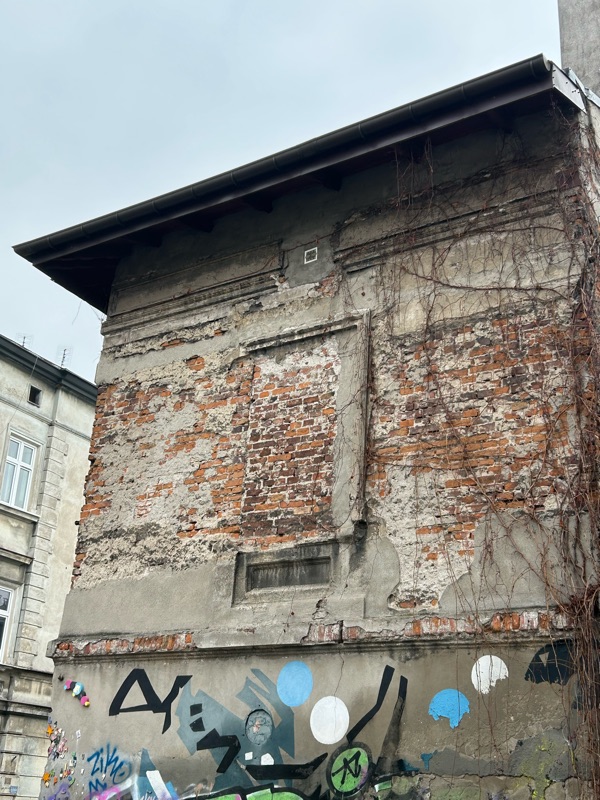 The further into the ‘ghetto’, the more run down it was. There is one, remaining portion of the wall built around the ghetto to keep those forced to live there inside.