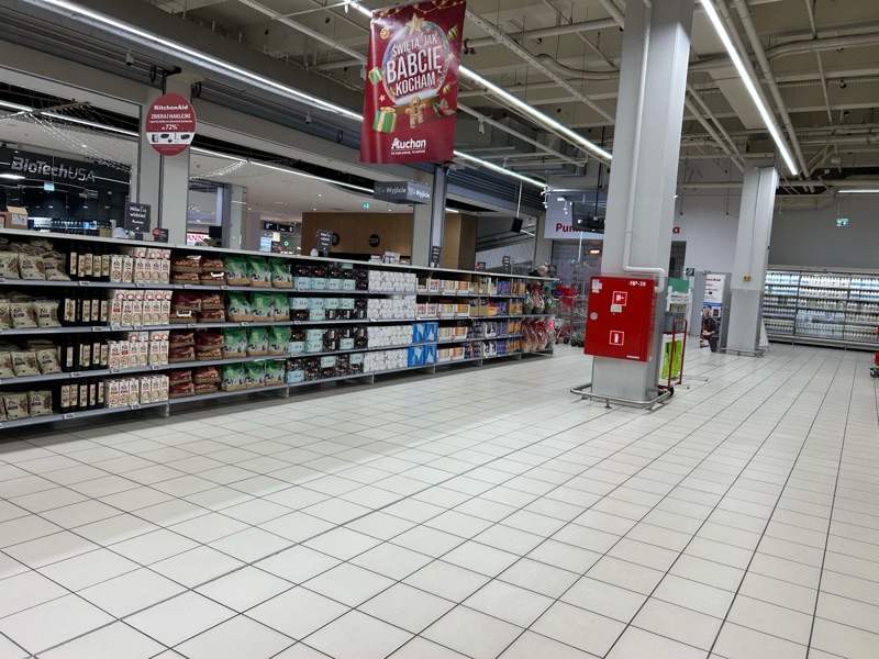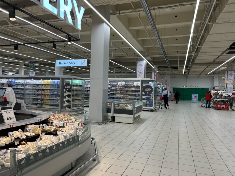 Plus One decided he wanted to learn the public transportation system, so instead of calling an Uber to get to IKEA, we set out, in the rain, mind you, to find the tram station. Which we did. But then it proved to be more difficult than we had intended, so we got off at the first stop we could, which was right near a mall, which fortunately had a place we could sit and have a treat with a cup of coffee. πππ Keep in mind that very few people speak English here, and even among the younger generation it is very limited! Then we just happen to find the largest supermarket hands-down in all of Poland I am certain! It’s like a Walmart no, a SUPER Walmart on steroids! Once again, lest I freak anyone out by pulling out my camera, (after all, they are just a mere 36 years beyond communist ruleπ¬) I had to be selective. So my photos do little to adequately portray the massive hugeness, but it gives you an idea.ππ I hopeπ.