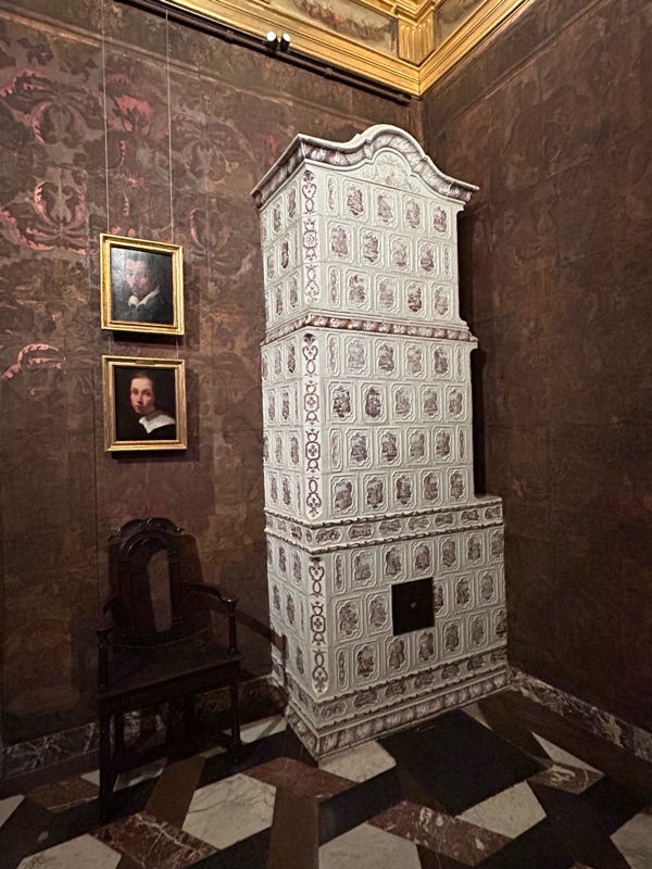 There was one of these ceramic heating units in several of the rooms.  I’m not sure how they worked, but they were just beautiful. The photo above it is a close up of one of the tiles 😊.