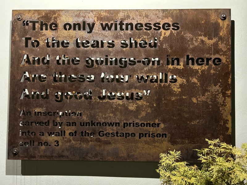 Our World War II tour ended at the Gestapo Headquarters, which was frightfully close to our hometel. This memorial was posted on the outside…a sad, sad history at the hands of Nazi Germany. π