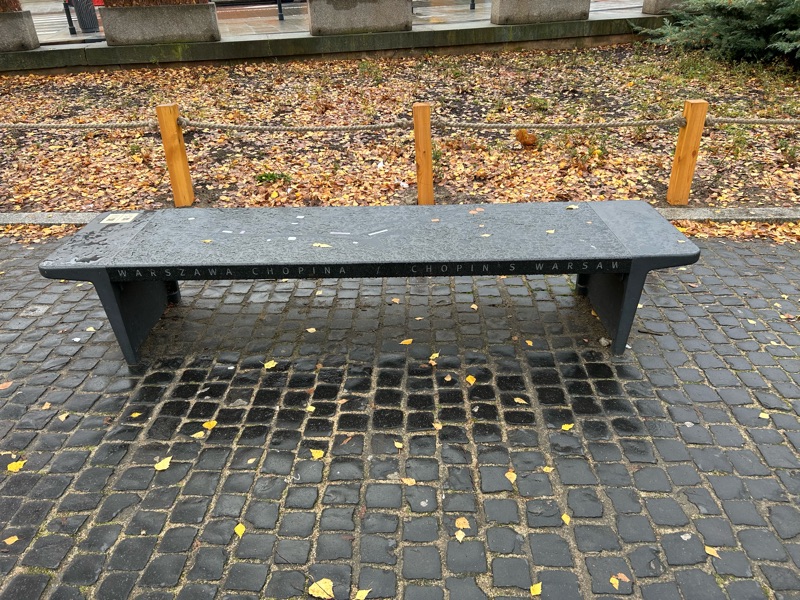 Below is one of the Chopin benches π. Chopin, music composer, was born in Poland. And his heart is interred forever in one of the churches here! If you push a button on the bench, pieces of his compositions play. The benches are scattered throughout Warsaw ☺️.
