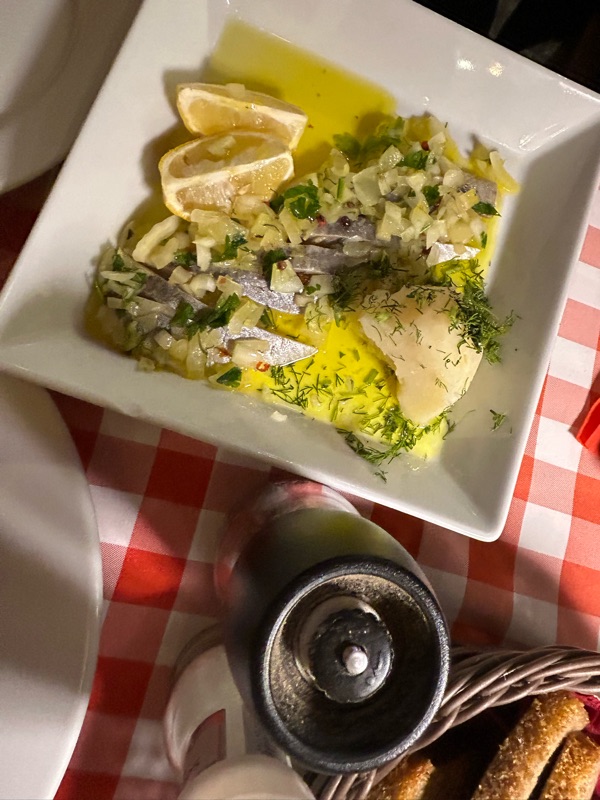This was marinated herring, which is considered an appetizer. I didn’t care for this at all, but I did taste it. I’m not sure if the herring was cooked or not, so the texture was a bit off-putting for me.